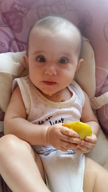 Для памяти доча в 8 месяцев 7 кг и 67 см. Прибавка всего 200 гр и 1 см. Мало. Ругают. Говорят что должна литр в день кушать и кушать уже все. У нас не введена кисломолочка и из мяса пока только индейка. Буду стараться увеличивать порции прикорма. Из достижений доченька прекрасно ползает на четвереньках. Может проползти весь зал например туда обратно, 5 м в одну сторону. Естественно хорошо сидит без опоры. Не много пытается встать за опору на коленях. Очень любит бассейн, наконец полюбила гулять сидя в коляске, а не на маме. Визжит и дует пузыри. Улыбается во весь свой беззубый открытый рот и хохочет. Говорит слоги, но редко. Типа Ба Ба Ба, фу, па. Мам когда плачет или канючит. Скоро ждём третий курс массажа.