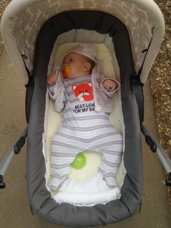 Т.к.растем и толстеем, то не знаю, как мы откатаемся в нашей маленькой коляске зимой, т.к. с комбезом он ее заполнит полностью, либо придется пересесть в прогулку, нам уже будет полгода, думаю можно будет, главное не замерзнуть ему) А вот так мы уже в ней выглядим на сегодня(точнее фото вчера)