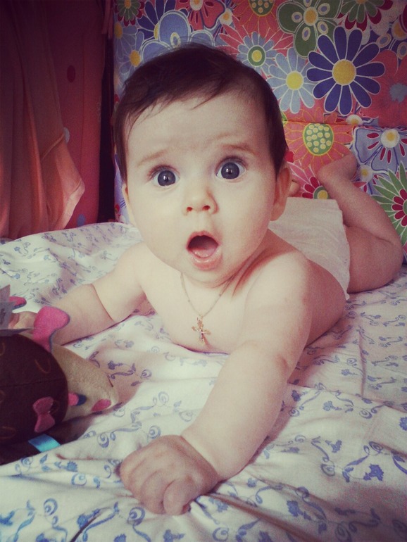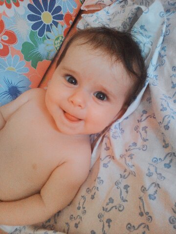 Моя девочка очень нежная,ласковая и улыбчивая. Это моё солнышко,греет меня своим теплом с самого утра,улыбаясь во все десны когда я просыпаюсь и начинаю с ней разговаривать.