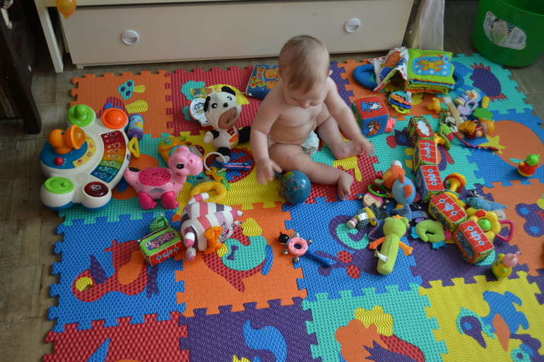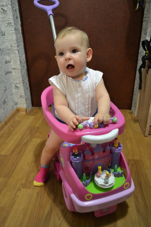 И да,у нее много,ну очень много игрушек.Может себя занять на некоторое время.Обожает интерактивные игрушки))