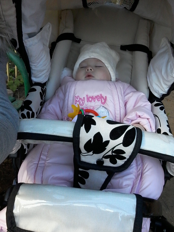 Сегодня выгуляли его. Оооой, вообще круто! Она так лежит уютно в нем, занимает пространство прогулочной коляски, не катается туда-сюда. Удобно даже полусидя. Так она хоть соглашается гулять, все видно же :)
