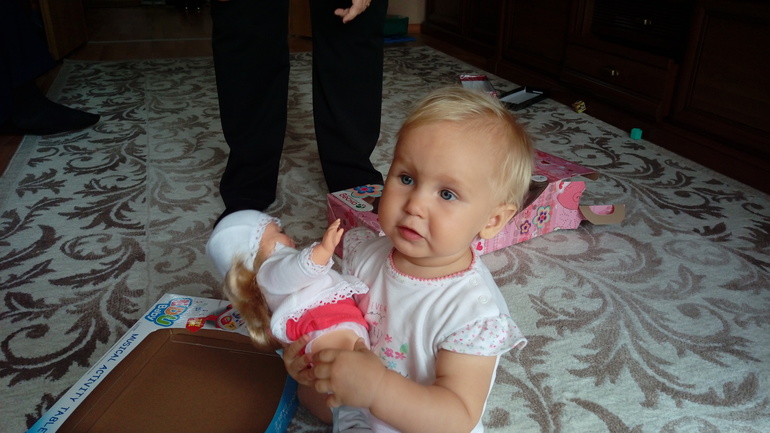 Уже годик. Наши выпускники7.09 исполнился моей маленькой сладкой девочке годик! 10.09 праздновали, а 11.09 наконец-то крестили доченьку. Василиса за это время преодолела сложный путь, каждый раз глядя на маленького человечка я восхищаюсь тому, Как много она прошла! Итак, к годику Василиса говорит мама,папа, баба, ляля, вава, бабах, ням, издает звуки, подражая животным и людям, собирает пирамидку (вразнобой пока) да и вообще все развивашки для ее возраста щелкает как орешки, мигом разбирается что куда и где :-) пультом специально переключает на телевизоре как мама с папой, в телефон тыкает как надо и куда надо (ну как ни прячь - Надо и все тут ). Кушает все, что даю, но овощи исключительно под мультики. Любит выпрашивать из наших тарелок все подряд, но если то же самое положить ей в тарелку - теряет интерес :( поэтому пока пюре. 12.09 моя девочка пошла! Причем сразу торопится бежать и ноги через пару метров заплетаются :-) Любимая игрушка ляля! Качает на ручках, в кроватке, катает в колясочке :-) сюжетные игры тоже освоила :-) еще играем в догонялки, друг за другом по очереди бегаем, любит валяться на кровати со мной, чтобы я ее щекотала. Она такая сладкая! Даже незнакомым людям на улице машет лапкой и подмигивает одним глазом (специально, но не знаю где научилась). Моя Василиса, Василёк!
