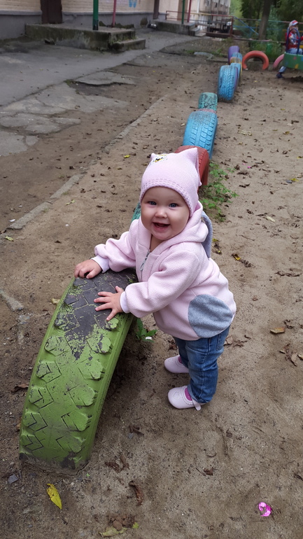 вес 9.1 кг. Рост не измеряли. Ну наверное уж 73 см. Носим одежки на 80 см. 16 го сентября вылез 3 зуб 😆 средний сын с сада принес сопли 😢 теперь лечимся. так начался наш 9-й месяц. Кушает овощные и фруктовые пюре. Мясо не очень. По вкусу курица и кролик. При этом, курицу, запеченную в сметане 😈Кушает кашу хорошо. Беру альпен флер. Она и мне нравится. В этом месяце будем пробовать желток. Пьет из кружки. Соску не сосет. Соки и не пробовали даже почему -то😡грызет сушки и печенье твердое. Ползает как метеор, с пола все собирает как пылесос 😂 много поет и говорит на своем. Четко получается мама, дай, атата. Стоит держась за диван и стену, опирается на людей и большие игрушки. Ходит вдоль опоры. Стоит немного без поддержки. Спит мало, по 30-40 мин 3 раза в день. У нас совместный сон и гв. В кроватке только как в манеже сидит. Днем спит в коляске на улице. В песочнице жует игрушки и ест песок😳 копать понимаю что рано. Плачет по поводу только, есть хочет, спать или ударилась, штаны сменить. В остальном она как братец Коля, спокойный и самостоятельный козерожка 😇