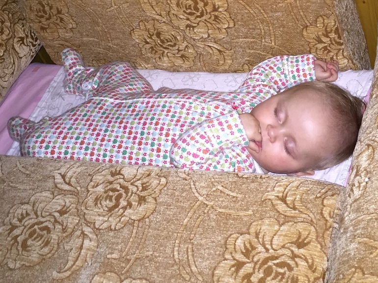 ещё я скручиваю одеяльце и под коленки малышу кладу,немного их приподняв. Он любит спать в "гнезде"