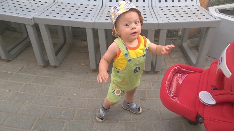Умение ходить практически полностью освоено. Ходит быстро и уверено, может сам пройти метров 200. Переступает порожки и другие препятствия. Периодически путаются ноги, но это бывает все реже и реже.