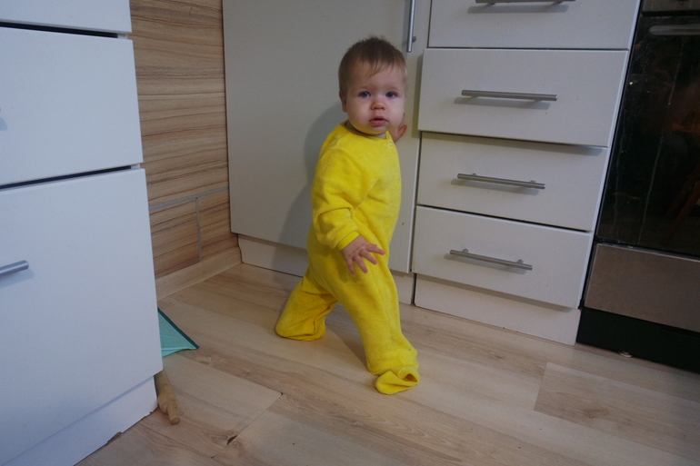 Ещё мила очень уверенно шагает...Да-да, шагает! Стоит под столом и ,увидев меня, тянет ручки ко мне и перешагивает) Шустряк....