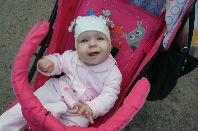 В коляске плохо сидит, хочет стоять