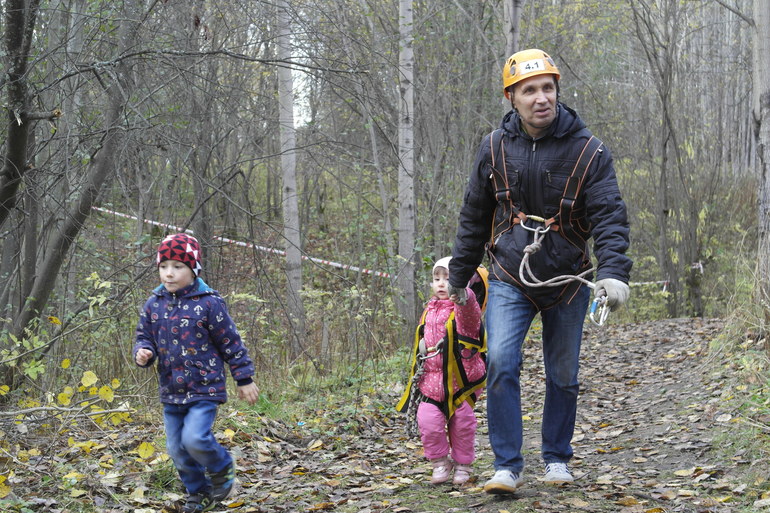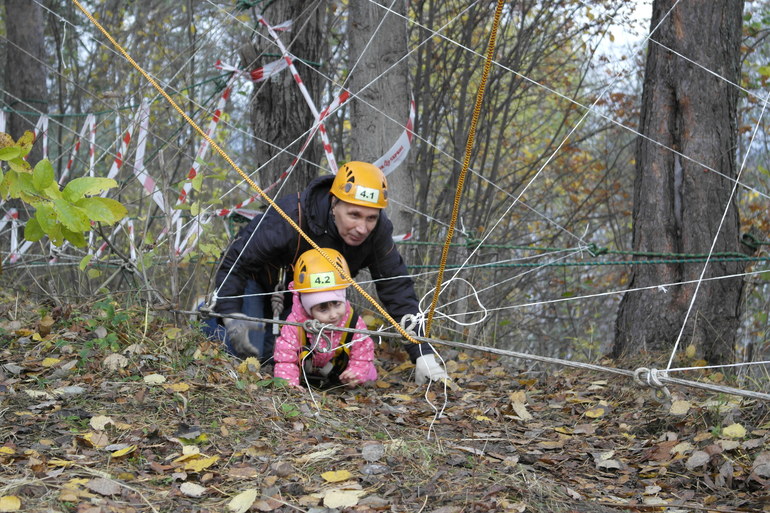 Несколько фотографий с преодолением полосы препятствий. На фото я, мой сын, племяшка и папа 62 года)))