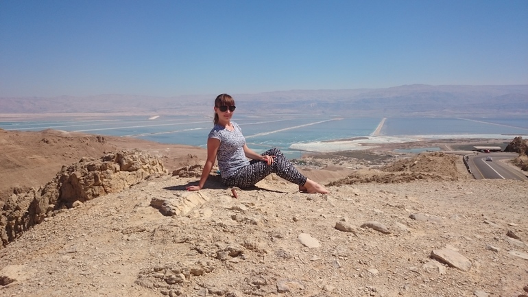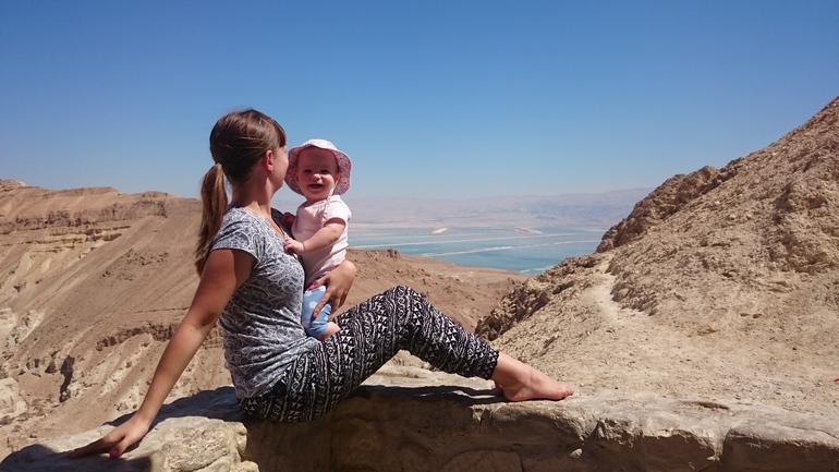 ))) Лерка обожает хлеб, я ей давала понемногу и практически целый час мы кушали кусочек хлеба и наслаждались дорогой)) И еще один наш мастхев - музыка Железновых. Накачала себе на телефон 30 песен и пела Лере, почему-то ее это очень успокаивало)) Где-то час она проспала, еще немного играла с игрушками. Проезжали мимо Мертвого моря, остановились там пофоткаться, красота такая.
