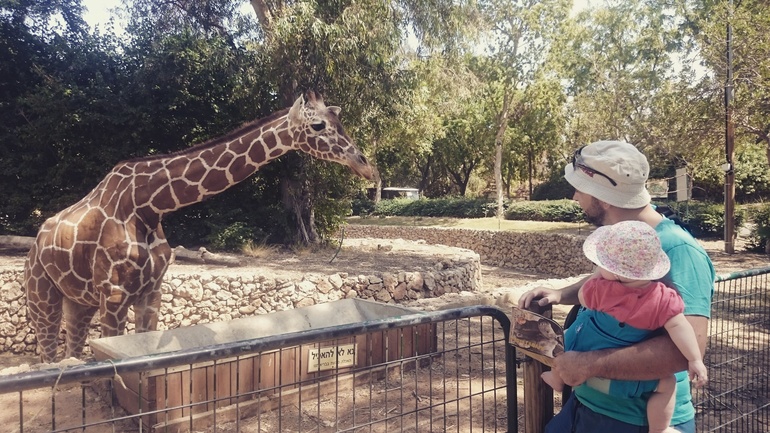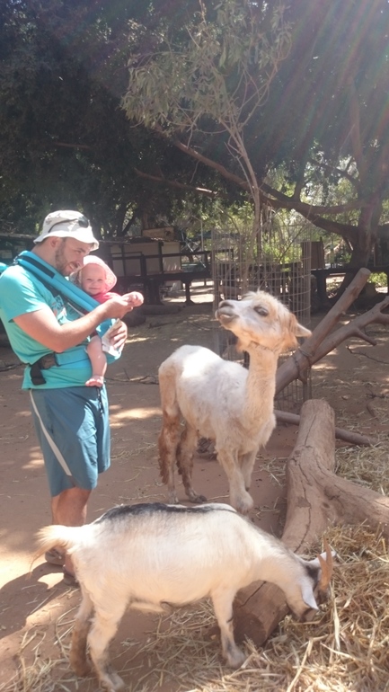 Потом вернулись обратно в Израиль. Там тоже было много интересного, ездили в зоопарк, он там огромный, сначала проезжаешь на машине мимо животных которые просто ходят по территории без всяких ограждений, это были зебры, бегемоты, какие-то горные козлы, и еще куча всяких. Потом смотрели на львов, жирафов, медведей, обезьян, тигров. Но Лере больше всего почему-то понравились курицы)))