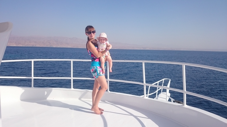 К самому морю не ходили, думаю, что с ребенком там делать нечего, оно очень соленое, если на теле есть хоть небольшие царапинки, сразу начинают щипать в этой воде. Да и жара была страшная, под 40 градусов. Тем более, мы с мужем уже там были. Приехали в Эйлат (Израильский город на границе с Египетской Табой, где мы и отдыхали). Оставили машину возле дома у какого-то парня с форума Винского, который любезно предложил нам это сделать и поехали на такси до границы. Границу переходили пешком и в отель шли пешком от границы)))