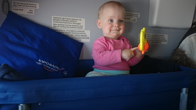Летели туда и обратно Аэрофлотом. В аэропорт (Шереметьево) ехали на своей машине, оставили ее там на платной стоянке, по деньгам получиоось вполне нормально (около 3,5 тысяч за 2 недели). В аэропорту (терминал Д) закрыли игровую комнату детскую, что меня огорчило, мы приехали заранее и довольно много времени провели там. Комнаты матери и ребенка мы тоже не нашли, поэтому все гигиенические процедуры делали в туалете для инвалидов, было довольно удобно. Перелет прошел на удивление хорошо и спокойно. В Аэрофлоте заранее заказали детскую люльку и детское питание. Что мы брали с собой в самолет (мы на ИВ): еда: 2 бутылочки для смеси, бутылочка с водой, бутылку детской воды, термос с горячей водой , 2 контейнера с заранее отмеренным количеством смеси на одно кормление, 1 баночку пюре (на случай, если детское питание, предложенное Аэрофлотом, оказалось бы неподходящим), ложка, слюнявчик; смена одежды: бодик, штаны, носки, царапки (это я взяла на случай, если Лера бы очень захотела поползать в самолете); гигиена: памперсы (4 шт), влажные салфетки, антибактериальный гель для рук, полотенце Икеевское маленькое, одноразовая пеленка, чтоб переодевать на пеленальном столике. Соски (3 шт) и игрушки. Перед взлетом и посадкой закапале Лере в носик Називин детский, чтоб ушки не закладывало, и давала бутылку смеси. На взлете во время еды она вырубилась и проспала часа 1,5. Переложили ее в люльку, оказалось довольно удобно и успели покушать, пока она спит. Детское питание а Аэрофолте оказалось вполне нормальным. Дали банку кабачка, индейки и яблока. Еще молочко в маленькой упаковке, которое выпил муж. Оставшееся время Лера сидела с игрушками в люльке, кушала, ходила на ручках по салону, заигрывала с соседями-пассажирами, играла с ними в "ку-ку" и улыбалась, покорила там всех)))