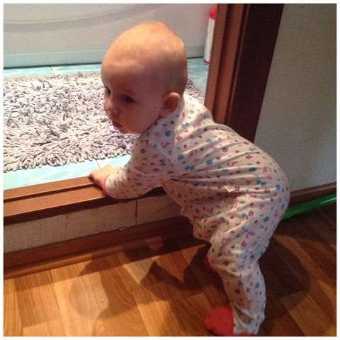 Стала вставать сама и аккуратно садиться на попу чтобы не упасть) аккуратничает)