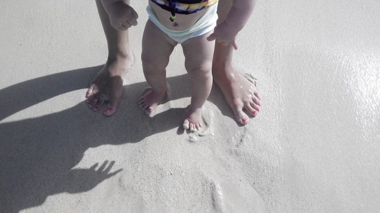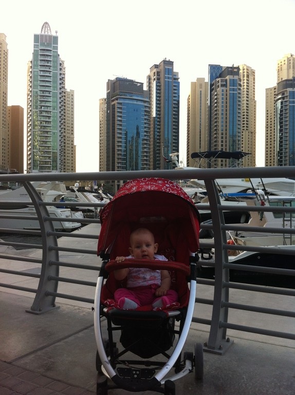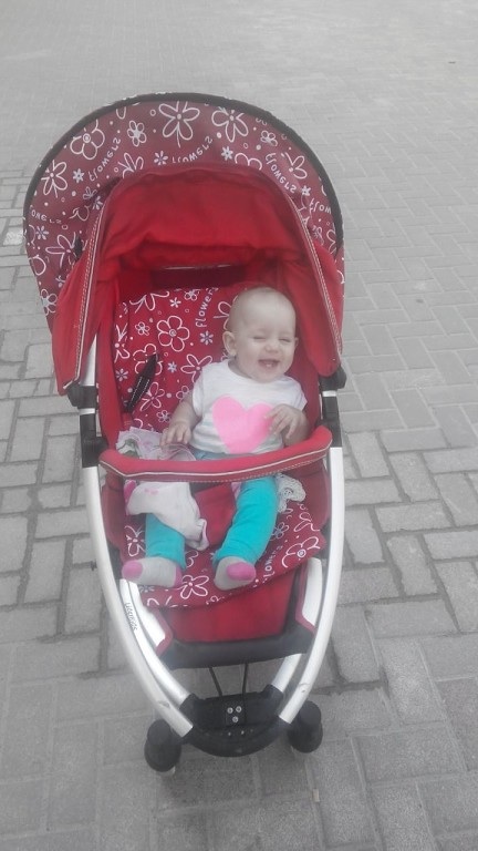 Это только прилетели, в настроении еще)) И там началась беготня, она то на маме, то в коляске! Везде все посетили, даже немного загорела наша бубусечка))