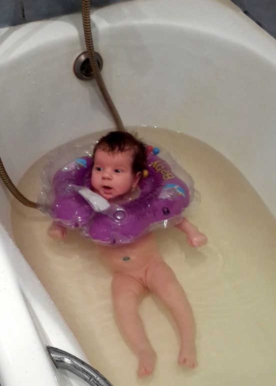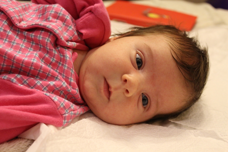 Вот фотографии сделанная вчера. Света уже держит головку и заметно подросла.