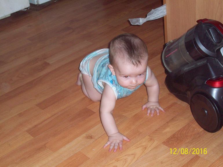 - ползаем хорошо на четвереньках.По всей квартире как самолет