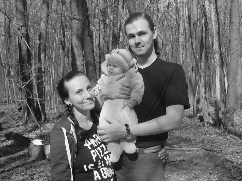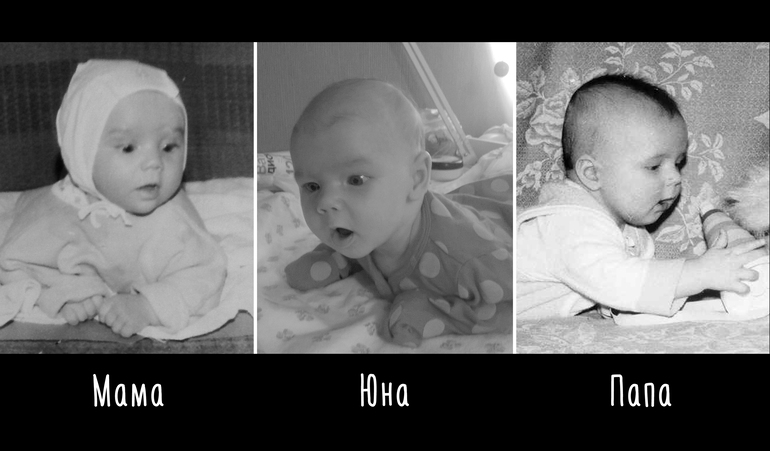 На этой фотографии нам с Лешей года по 2 наверное, Юне 7 месяцев:
