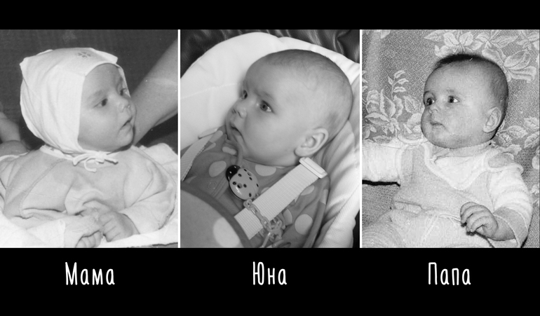 Ну а эта фотография сделана этой весной. Юне на ней 3 месяца: