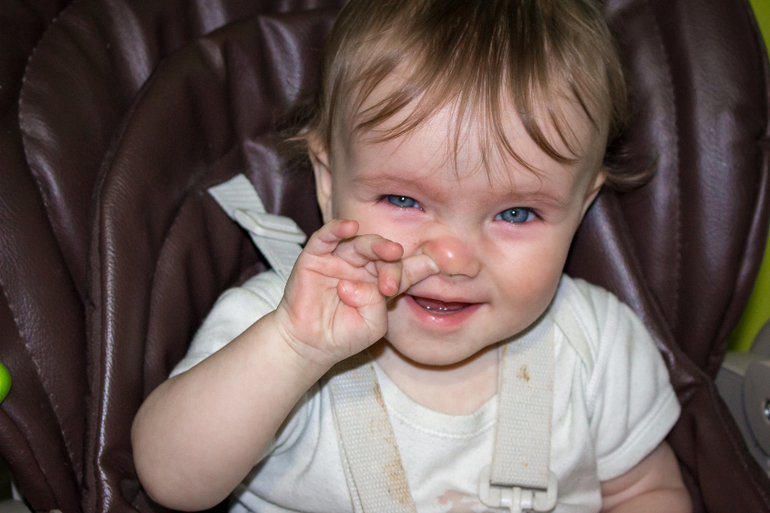 ЭмоцииДа с таким довольным видом, что я просто не могла это не сфотографировать для истории:) Настоящая принцесса на заляпанном едой троне и с пальцем в носу!