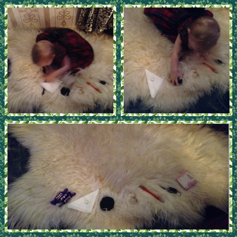 Сестричка подарила нам цыфорку, которую сделала сама и потратила на неё две недели) ещё подарили серёжки и машинку-толкар)
