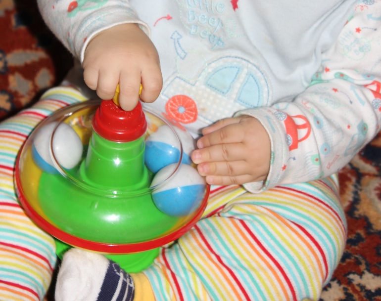 Можем играть с юлой по минут 5-10 несколько раз в день.