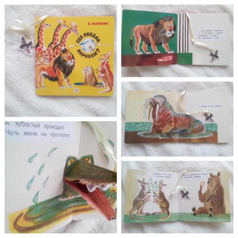 *Где обедал воробей? - чудеснейшая книга для малыша. Иллюстрации крупные на светлом фоне, разворот не перегружен обилием животных, книга из плотного картона с закругленными краями, цвета не раздражающие глаз, по паре строк на разворот и игровой эллемент, в общем идеальная книга на наш возраст!