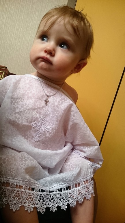 А еще мы крестили малышку. Это конечно испытание на прочность, ревели втроем: я, Алиса и крестная, но я верю, что это было не зря! Имя взяли Анисия. Вот такой босоногий ангел.