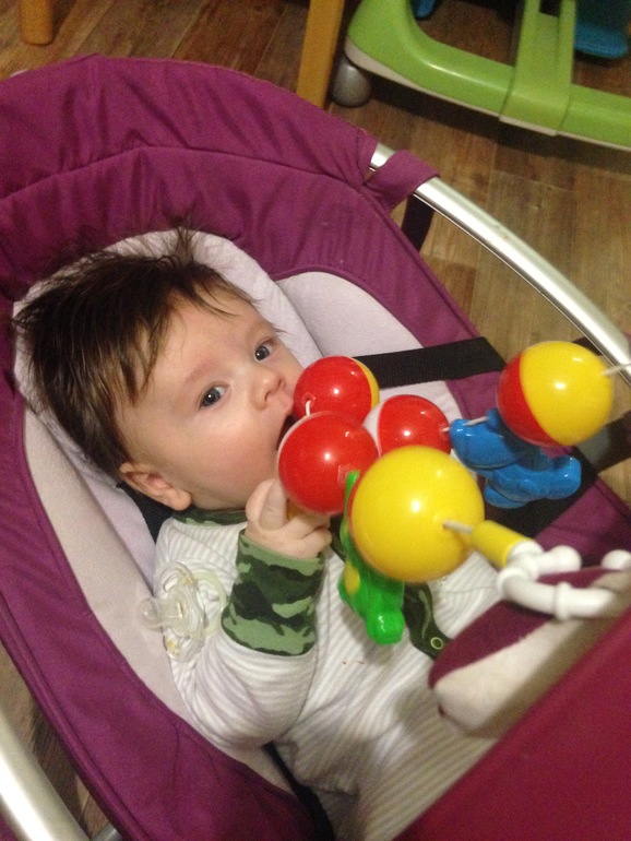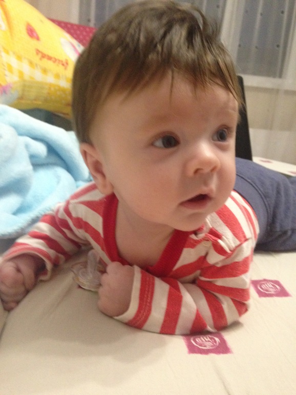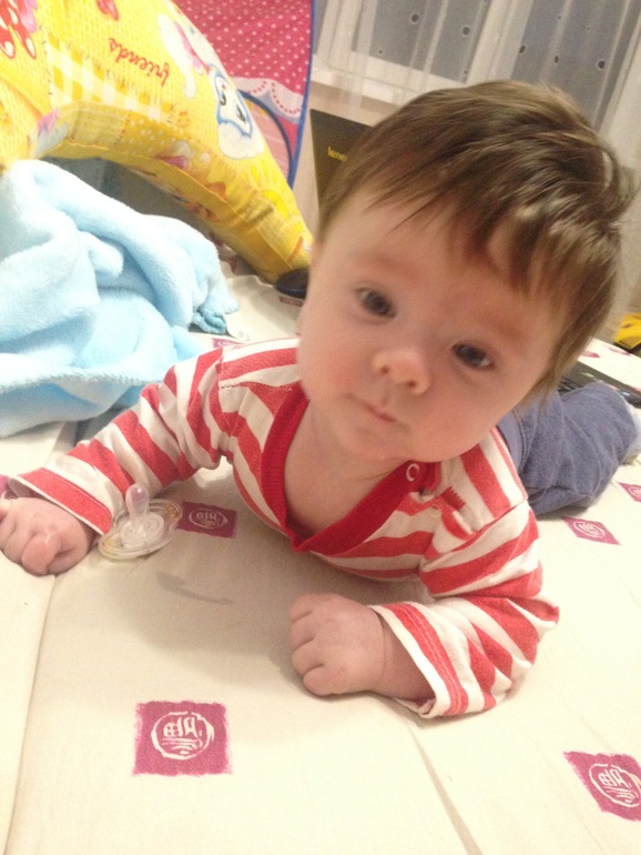 Мирон продолжает расти жизнерадостным спокойным мальчиком, за 3 месяца плакал 4 раза). Платон его невероятно любит, постоянно гладит и целует. Вес и рост знаю приблизительно : 10 дней назад был около 7 кг и 64 см. Из умелок : берет игрушку, все тянет в рот ( надеюсь, не как у брата... 4 зуба к 4 мес),переворачивается на бок, а дальше попа мешает. С живота на спину переворачивается легко. Перевороты меня огорчают, т к Платон в его возрасте 2 нед как вертелся, как заведённый. Ну будем ждать, и учиться перекатывать Толстую попку. Ночью Мирон попрежнему не ест, вот так сумбурно получилось ..