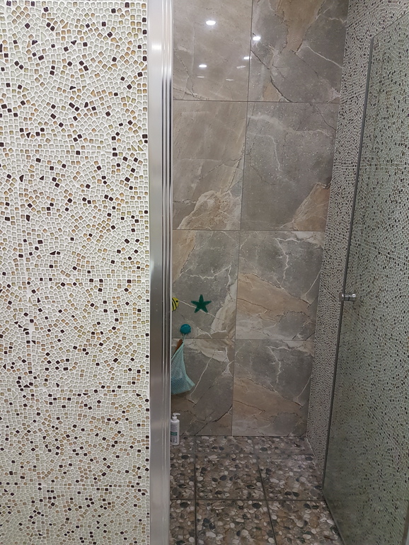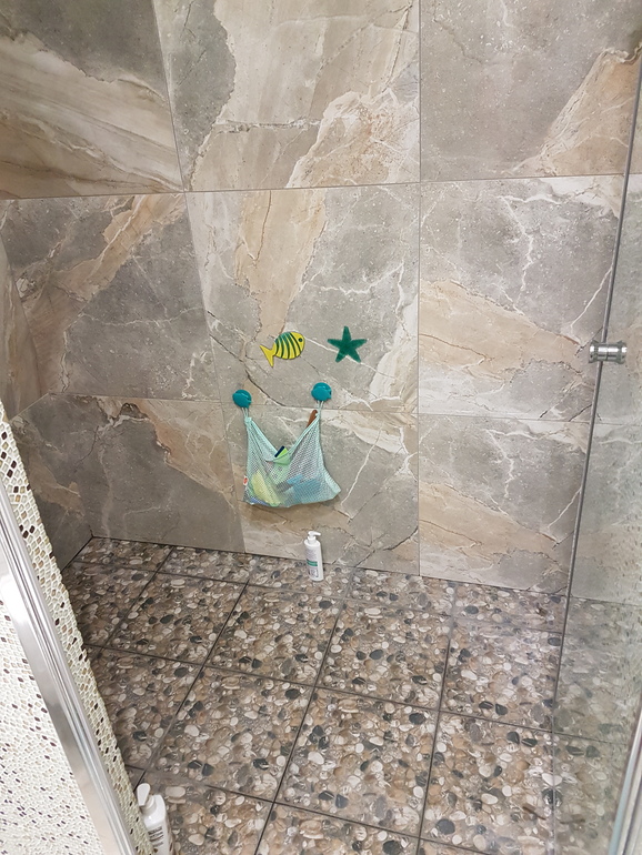 А в душевой шершавая галька)