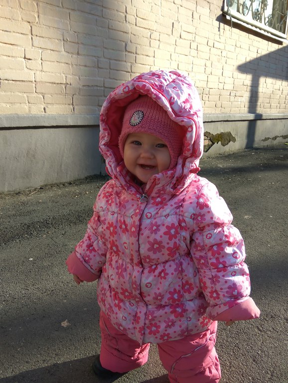 Ходит на улице ещё плохо, комбез тёплый зимний носим и сапожки , это ей мешает. Спим на прогулке в коляске . Сна 2. Один на улице, второй дома. Кушаем овощи и мясо, супы, пюре фруктовое с творогом , печенье, хлеб, фрукты, каши, пьёт компот и чай без сахара . На ночь кашу из бутылочки молочную готовую Фрутоняня . Грудь ночью, и то как соску. Засыпает на ночь хорошо. Но просыпается 3-4 раза меня разбудить😑 к году хочу сворачивать гв. Прививки не по плану немного . 3-я акдс только в декабре. Вводим в прикорм рыбу. Ещё не пробовали. Говорит мама, папа, баба, ааа(на собаку, ав) нана(это просит) много на своём или первые слога, ко (на братьев, Коля и Костя) . Катенка спокойная как танк , сама играет игрушками, быстро успокаивается , если ударится.