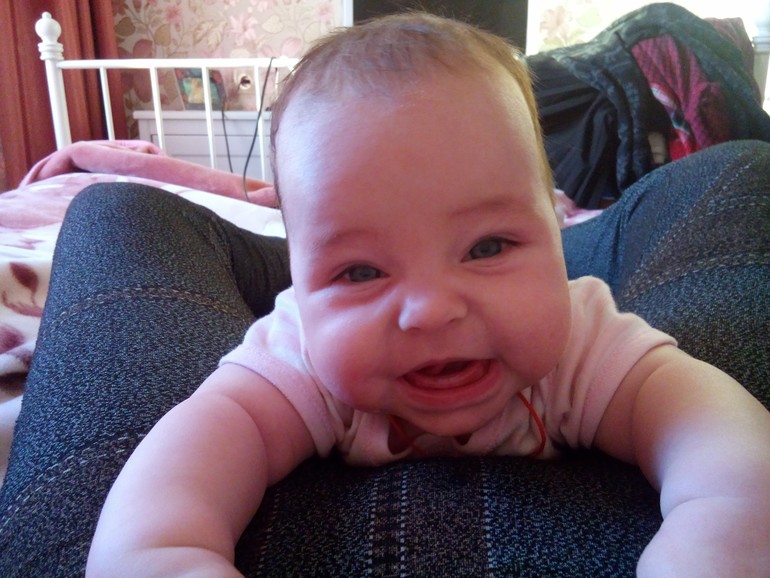 Ань первый у нас зуб вылез в 4 мес.и неделя, а сейчас 4,5 месяца еще 3 вот вот вылезут уже дырочки так что на подходе