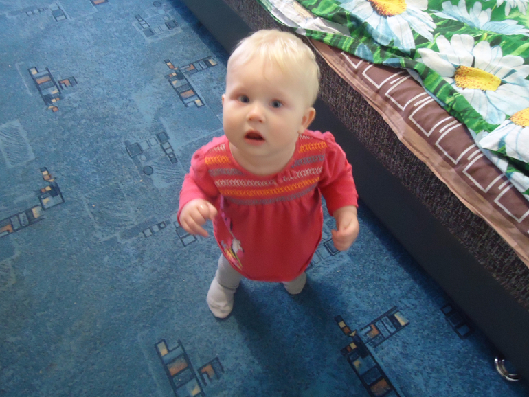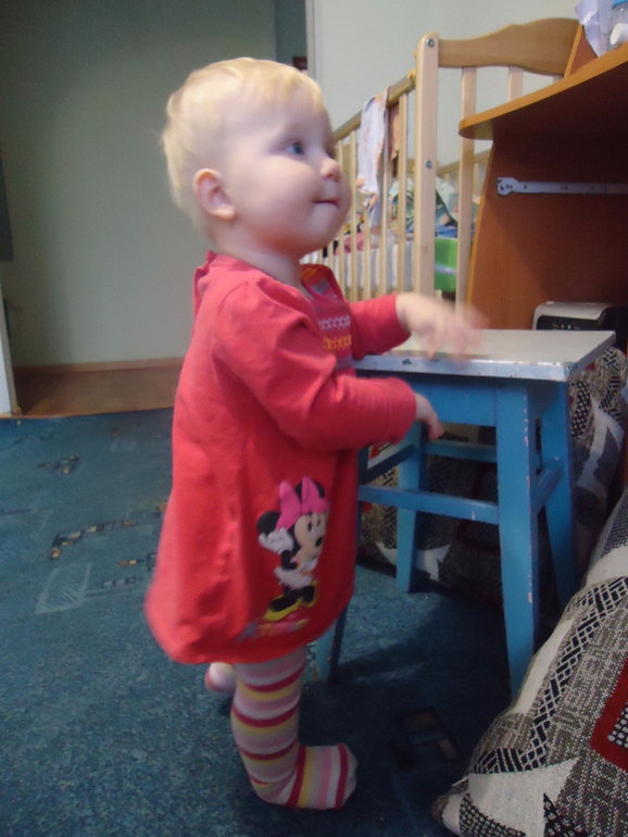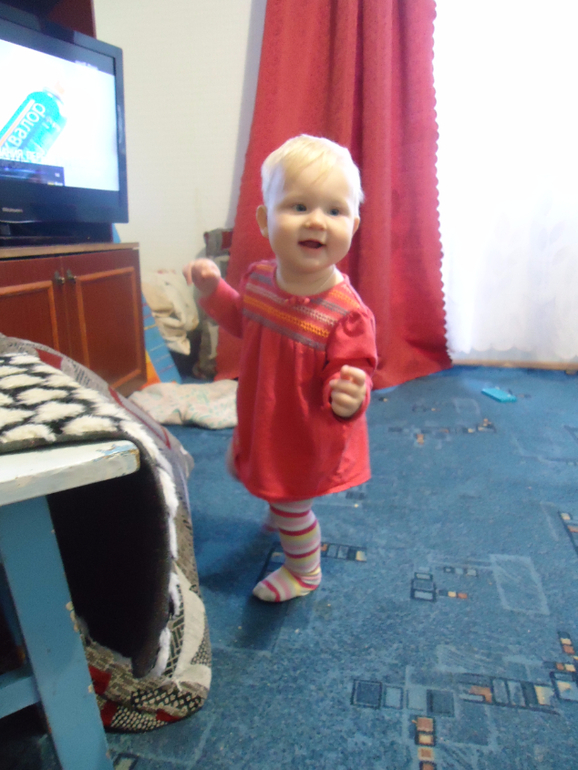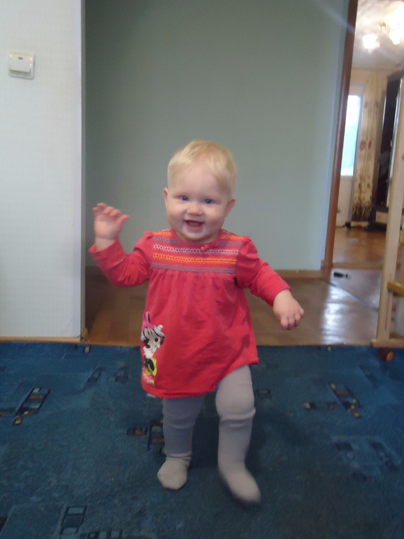 Самое главное достижение месяца- Катюшка пошла. У же в 8 она пыталась, по два три шага. А в 8,10 уже окончательно пошла. Теперь свободно передвигается по всей квартире, даже бегать пытается.