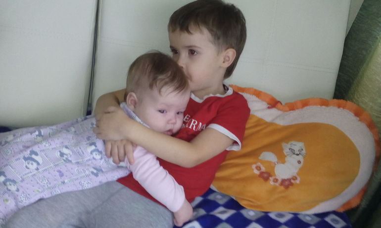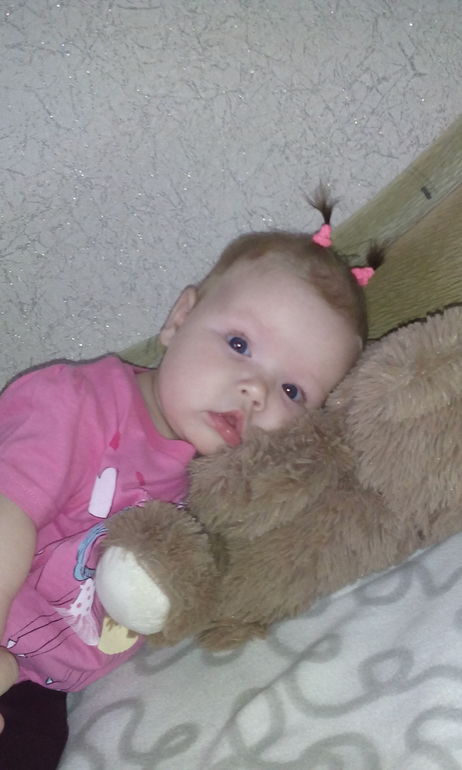 За один день до исполнения 4-х месяцев Соня перевернулась со спины на животик, теперь мы от ее ни на шаг не отходим, крутится во всю. Появилась любимая игрушка))) да и вообще она стала больше играть с игрушками. К незнакомым людям не идет, но с удовольствием по улыбается и "поговорит" сидя у меня на руках. Зато очень любит брата (4 года сыночку), прям милота такая, она с ним по особенному разговаривает, так нежно нежно курлыкает. Сынок тоже молодец, Соня его щиплет, за волосы хватает, а он даже руки ее не убирает, только кряхтеть сильнее начинает. Спит Софа через каждые 2 часа, сон не длинный, минут по 30-40, конечно мне бы хотелось что бы хоть часа два подряд она бы спала, но нет так нет. Прививку АКДС сделали, перенесли в принципе нормально, дня 3 только капризная была. Зубов врач сказала не видно пока, зато слюни просто рекой льются. Ну вот вреде бы и всё. И фото нашей девочки
