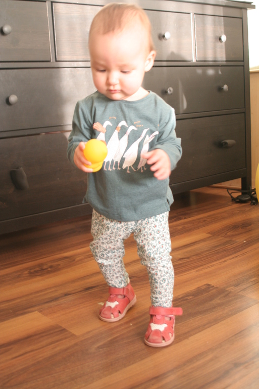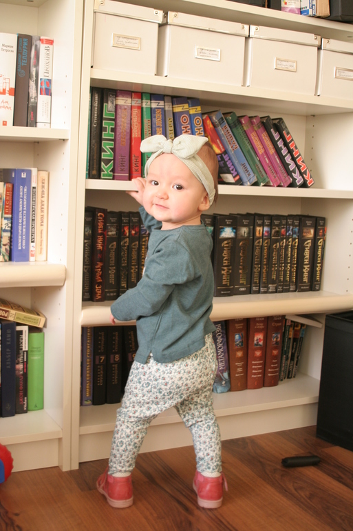 Началось с того, что через пару дней после 9 месяцев начала отпускать опору и вставать посреди комнаты, а заодно делать пару шагов. Потом, правда, мне пришло в голову купить ходунки-каталку, и за четыре дня, проведенных с ней, ходить без опоры Мира разучилась. Так что неделю назад опять были первые шаги.