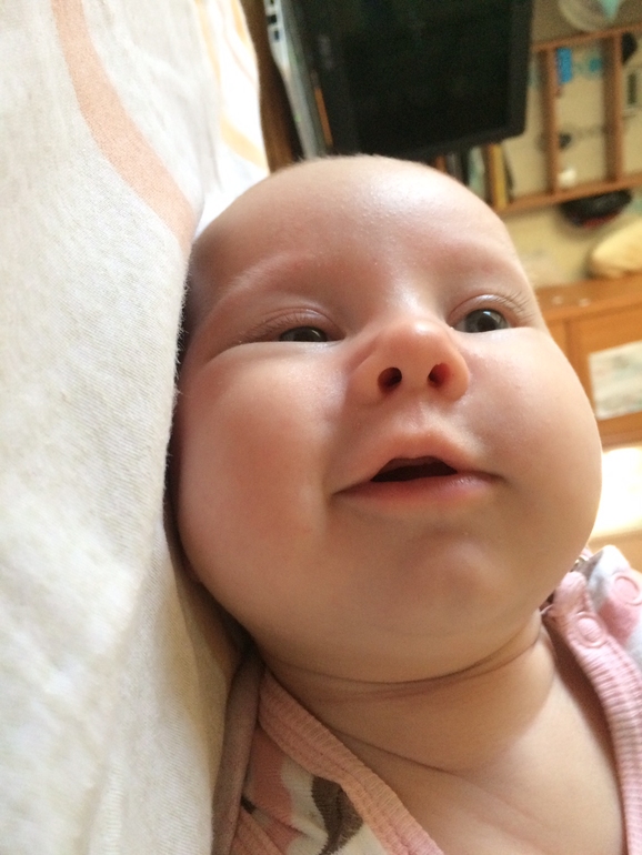 Переворачиваться пока только на бочок умеет, да и то редко)))