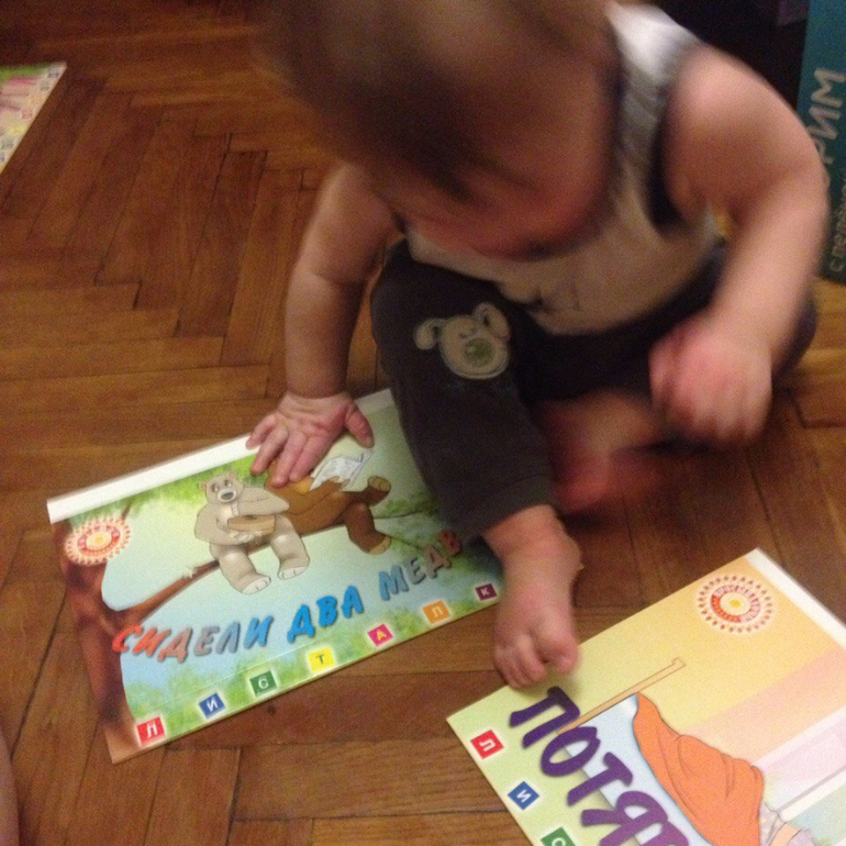 Отчёты по месяцамНаш папа сегодня молодец) взял на себя развитие сына) играл с ним в цвета. Показывал как капелька меняет оттенки. Было весело, а потом все отобрал и раскидал по полу. Ещё папа показал нам нашу любимую листалку про медведей) И начал новый этап в Говорим с пелёнок "Подражалки " короткие стишки с акцентом на слога. Они провоцируют малышей начать говорить. Через некоторое время, когда малыш хорошо запомнил стишок, делаешь паузу, что бы он смог по инерции ответить тебе. Например: ..."мне дорогу уступи и сигналит нам....(пауза)...БИ-БИ". Я так и с обычными стишками делаю, он мне отвечает, правда пока теми слогами, которые знает) но начало положено. А пока папа занимается, мама бегает с телефоном, фотографирует, главное, что бы Мирослав не заметил, не любит на камеру что-либо делать.