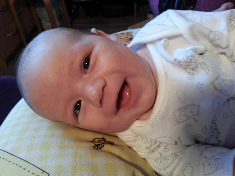 Кратенько о двух месяцах: рост был 61, вес 6200, головка и грудь 41 см. В начале второго месяца появились первые осознанные улыбки, к концу второго месяца научился брать ручками предложенные игрушки. Неистово агукал и гугукал, за что и получил кодовое имя Гугуша ) В один день буквально научился устойчиво держать головку в положении лёжа на животике- очень долго ленился и при выкладывании делал вид, что это ему никак не по силам, а потом вдруг в очередной раз поднялся на локтях и продемонстрировал новый навык. Обнаружил в зеркале меня, а через недельку и себя- очень полюбил смотреть и улыбаться и строить себе глазки в отражении. Что ж ещё... Эх, вот почему надо чаще писать- всё забывается.