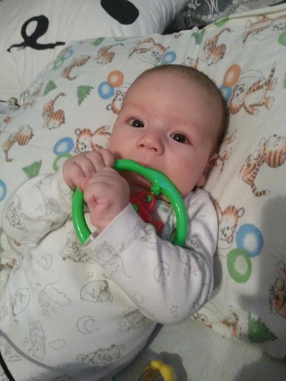 Кулаки насасывает жэстачайшэ! Слюни текут рекой уже третью неделю- за ребёнком тянется мокрый след как за улиткой )) Пару дней назад выдала ему прорезыватель- не очень понимает, что с ним делать. Но когда я сама ему этим прорезывателем почесала десны- завизжал от восторга. Значит всё-таки там где-то шевелятся зубы?.. Страшно! Вроде не сильно мы мучались животиком, но было иногда, буквально только закончились вечерние капризы из-за бродячих пуков- и неужели уже зубы?! Бедные малыши, столько их подстерегает неприятностей. Но пукает задорно, конечно )) сразу понятно, что мужик растёт, а не принцесса какая-нибудь ))