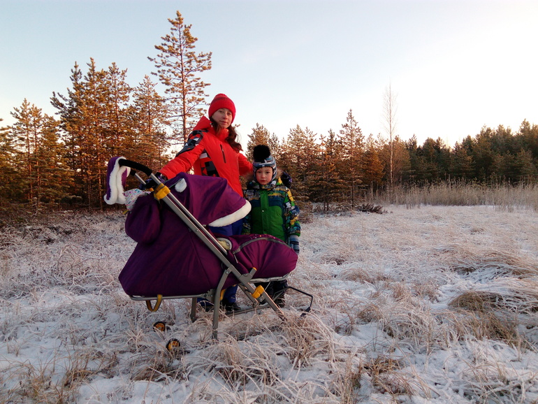 А ещё, у меня новый транспорт, очень удобные и тёплые саночки)))и теперь мы много ходим в далекие интересные походы