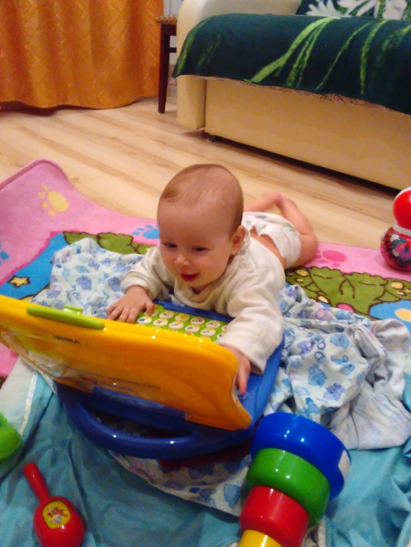 У братика тоже есть интересные игрушки: машинки, конструктор и ... ноутбук