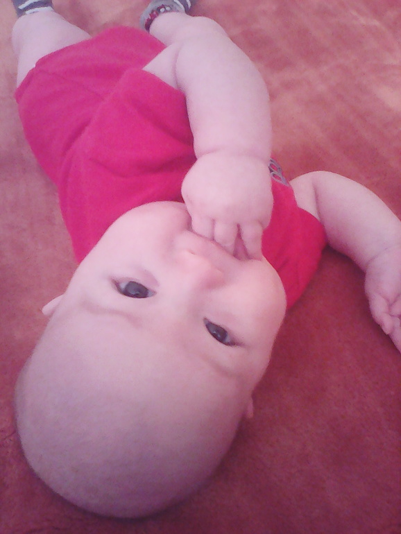 Кусаемся целуемся и хохочем. Грызем ручки и все что в них попадает. Игрушки любим, но не долго. Если ложу в кроватку под мобиль, хватается за игрушку в середине и стягивает мобиль так, что все висюльки крутятся по пузу. Спим три сна, 30 мин-1 час, 3-4 часа, 30 мин. Бодрствуем 2-2,5 часа максимум. Кушаем на сон и во время. Ночью каждый час, два.