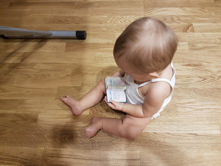 С развитием рук идёт нога в ногу развитие речи. Всё время что-то рассказывает на своём лялечном языке) Стала уже хорошо проговаривать- мама, папа, баба, иногда - деда), титя - всегда когда угощаю её своим молочком)