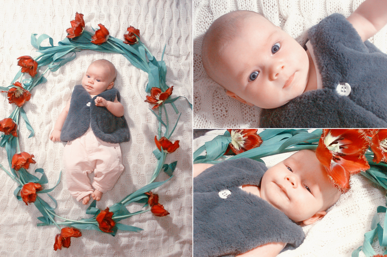 ХвастаемсяЭтот месяц пролетел еще быстрее чем предыдущий. Юна продолжает расти и удивлять нас новыми умелками. Она уже вполне уверенно держит голову и приподнимает плечи, лежа на животе. Периодически требует, чтоб ее носили на руках и показывали все вокруг. Пытается переворачиваться, но пока выходит только на бок. Каждое утро улыбается нам озорной беззубой улыбкой, жует свои кулаки так, как будто это самая вкусная штука на свете и очень громко и весело кричит после того, как чихнет.