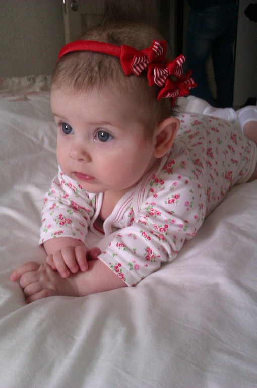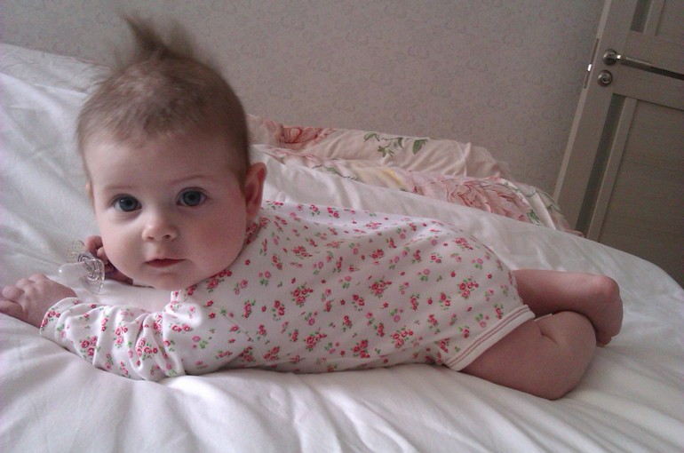 здоровья дочурке такой себе солнечный зайчик:) моей доче 31 будет 5месяцев.ножки мы еще не нашли,но пытается ползать.