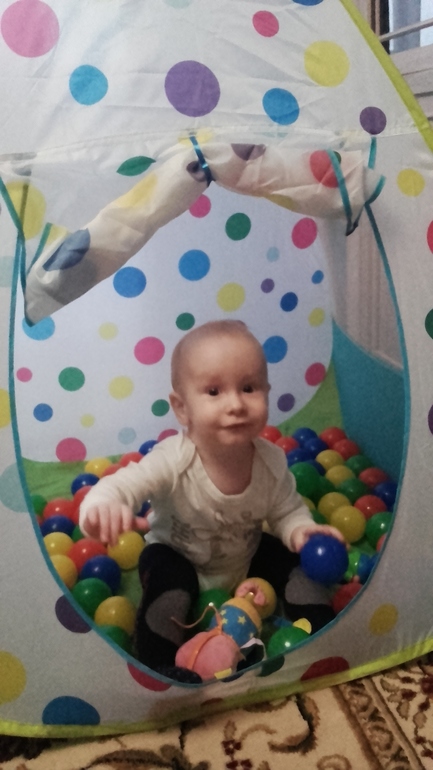 5. Палатка с шариками. Ох, как он в ней скачет. Переворачивает вверх дном.