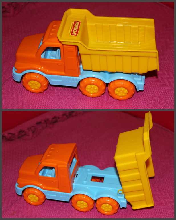 6. Машина. Мальчик у нас, а машина пока одна, самая обычная от полесье. Платон ее пока не катает, но я показываю. В основном он крутит колеса, машет ею, вертит, рассматривает. Нравится когда я в кузов складываю что-то и он его переворачивает и все высыпается.