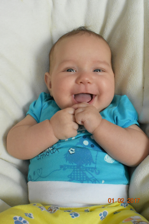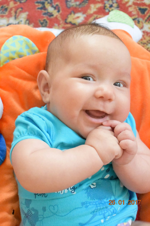 Котенок просто проснулся после трех месяцев! Смеется, гулит, строит глазки. Играет с погремушками, смотрит на яркую гирлянду. Пытается дотянуться до мобиля)))Обожает быть на ручках! Любит смотреть в окно. Так здорово за ней наблюдать!
