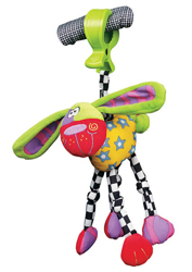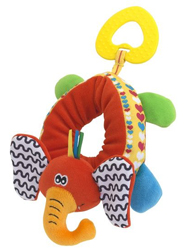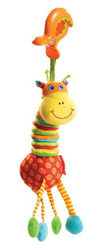 Используем с 1 месяца. Жираф фирмы Tiny Love и ослик Playgro. Одну подарили, вторую для разнообразия купила. Мягкие лапы, сам корпус из ткани, разноцветные, сверху крепятся на карабин. Механически раздвигается шея на жирафе и черно-белая веревочка на ослике. Сначала просто смотрел, потом стал запихивать мягкие ноги в рот, мусолить и визжать