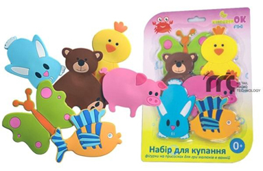 Используем с 3,5 месяцев. Купили. Из силикона, разной формы, на присосках. Очень нравится купаться с ними. Пока рассматривает, говорят потом будет отлеплять и играть с ними.