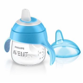 Такой же только синенький, там силиконовый наконечник и из него вообще не проливается, разбирать и мыть удобно, мы им полгода пользуемся уже) Мне нравится авент больше, но сыну он по вкусу видимо не пришелся) Когда кушает пьет из простого поильника с носиком, а по дому с этим бегает)